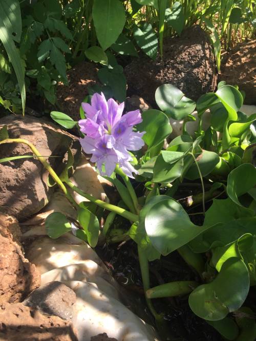 Je voulais absolument créer 2 toute petites mare (70x40 cm environs) pour apporter un point d'eau à la faune extérieur et obtenir de l'humidité pour le jardin. Un minuscule écosystème installé ( roche, jacinthe d'eau ), la nature à fait le reste.